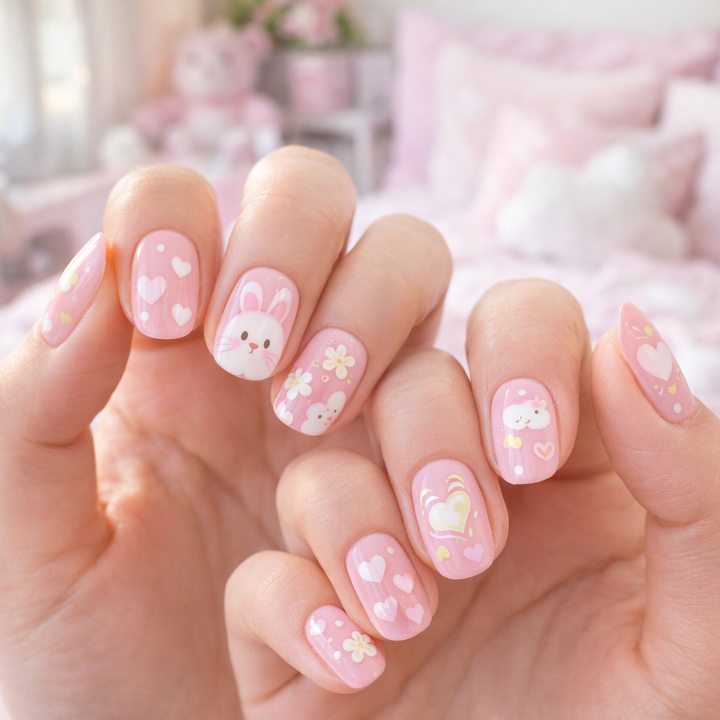 This pastel nail art features sweet and charming accents that create a soft, playful look. Designed to suit teenagers and daily styling, it’s perfect for casual outings, school days, or adding a gentle pop of color to your everyday appearance. The delicate pastel tones bring a fresh, youthful vibe that’s easy to match with any outfit.